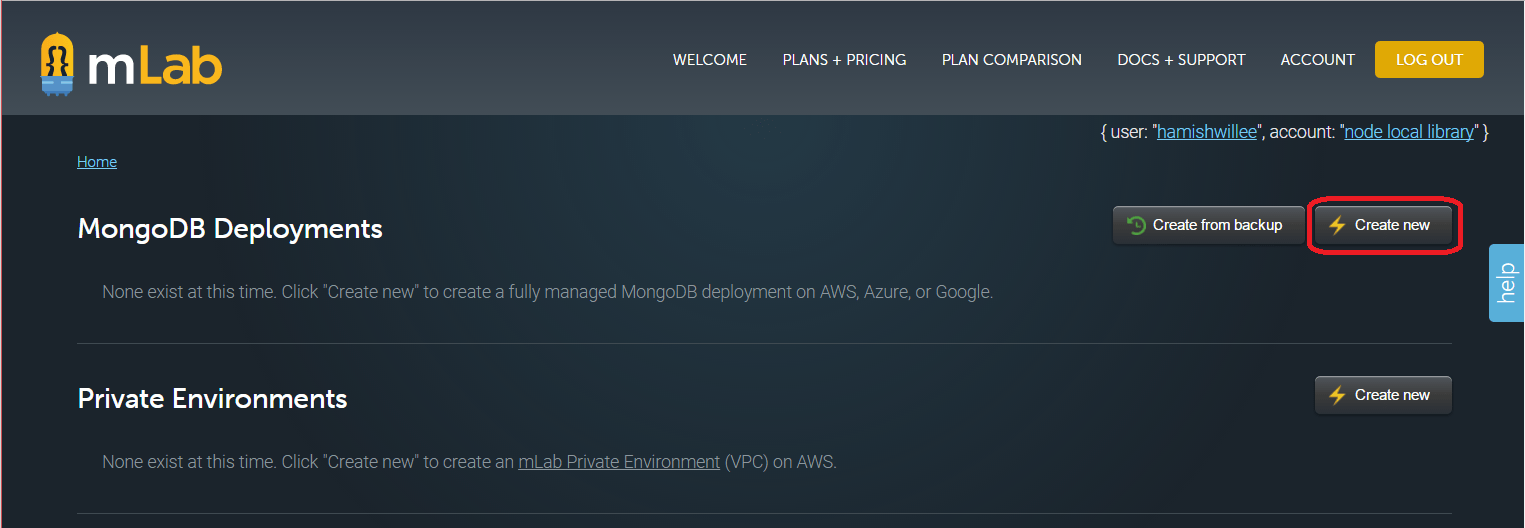 備註:對於本教程,我們將使用基於 mLab 雲的數據庫,作為服務沙箱層來提供數據庫。這適用於開發,也對於本教程很有意義,因為它使「安裝」與操作系統無關(數據庫即服務,也是你可能會用於生產環境數據庫的一種方法)。
